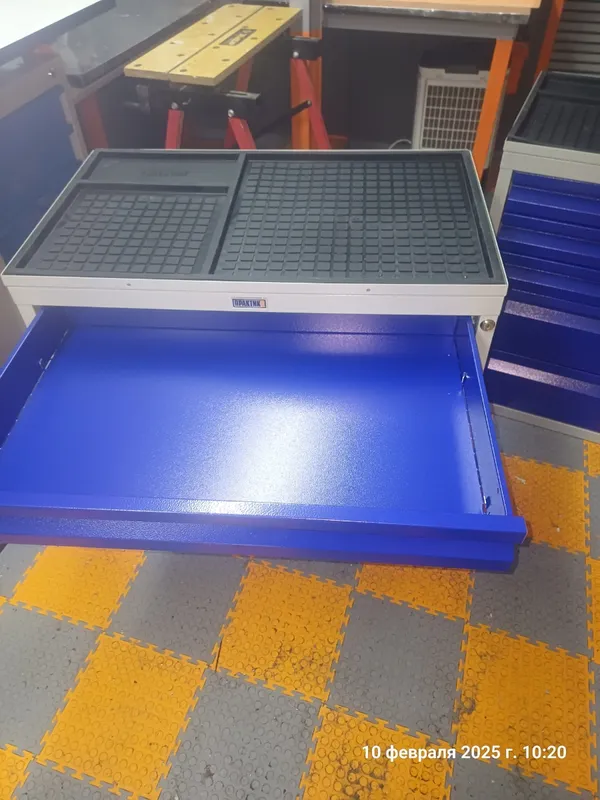 - Верхняя поверхность покрыта резиновым маслостойким ковриком, который защищает инструменты и предотвращает их скольжение.